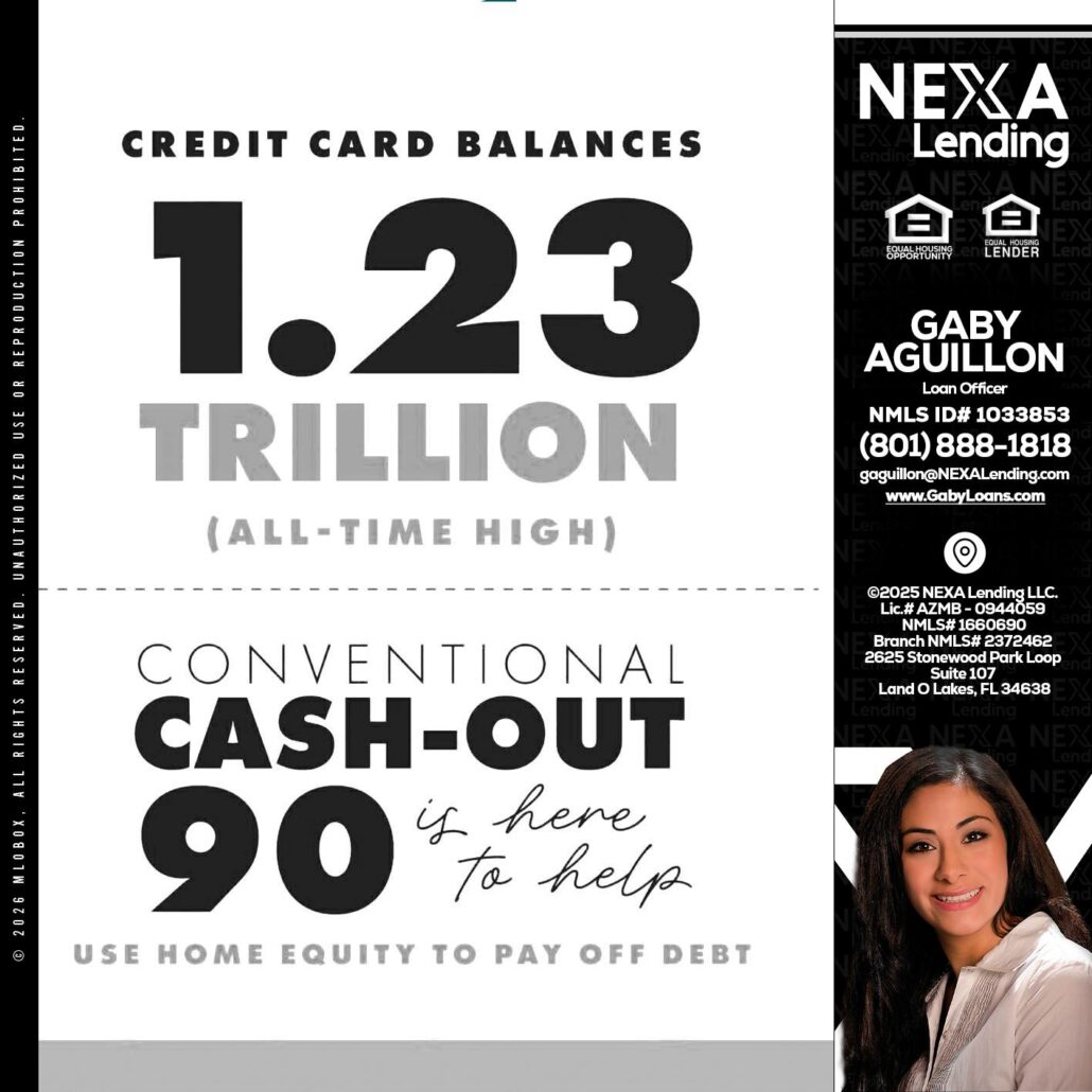 CREDIT CARD BALANCE - Gaby Aguillon -Loan OfficerHi, my name is Gaby Aguillon. I’m a Loan Officer with NEXA Lending LLC., offering personalized mortgage solutions, fast customized quotes, great rates and service with integrity.