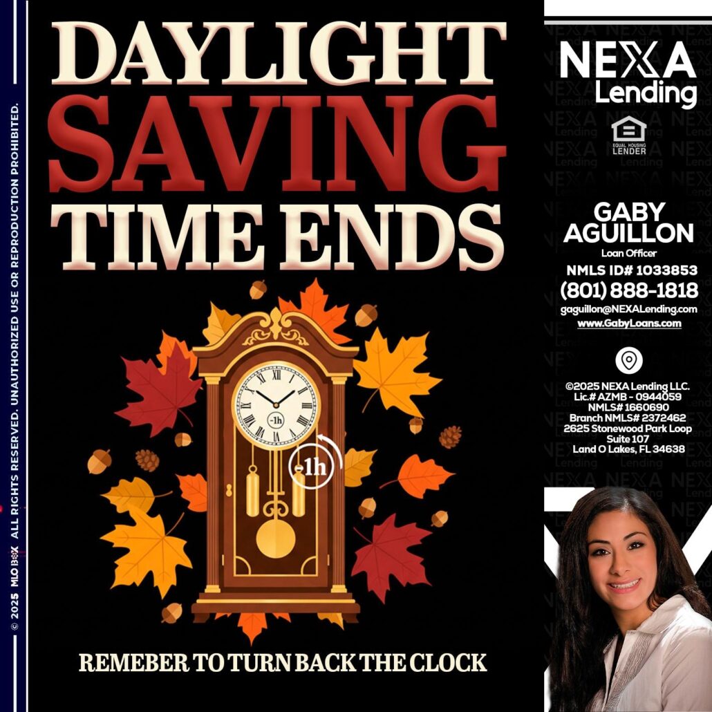 DAYLIGHT SAVINGS - Gaby Aguillon -Loan OfficerHi, my name is Gaby Aguillon. I’m a Loan Officer with NEXA Mortgage LLC., offering personalized mortgage solutions, fast customized quotes, great rates and service with integrity.