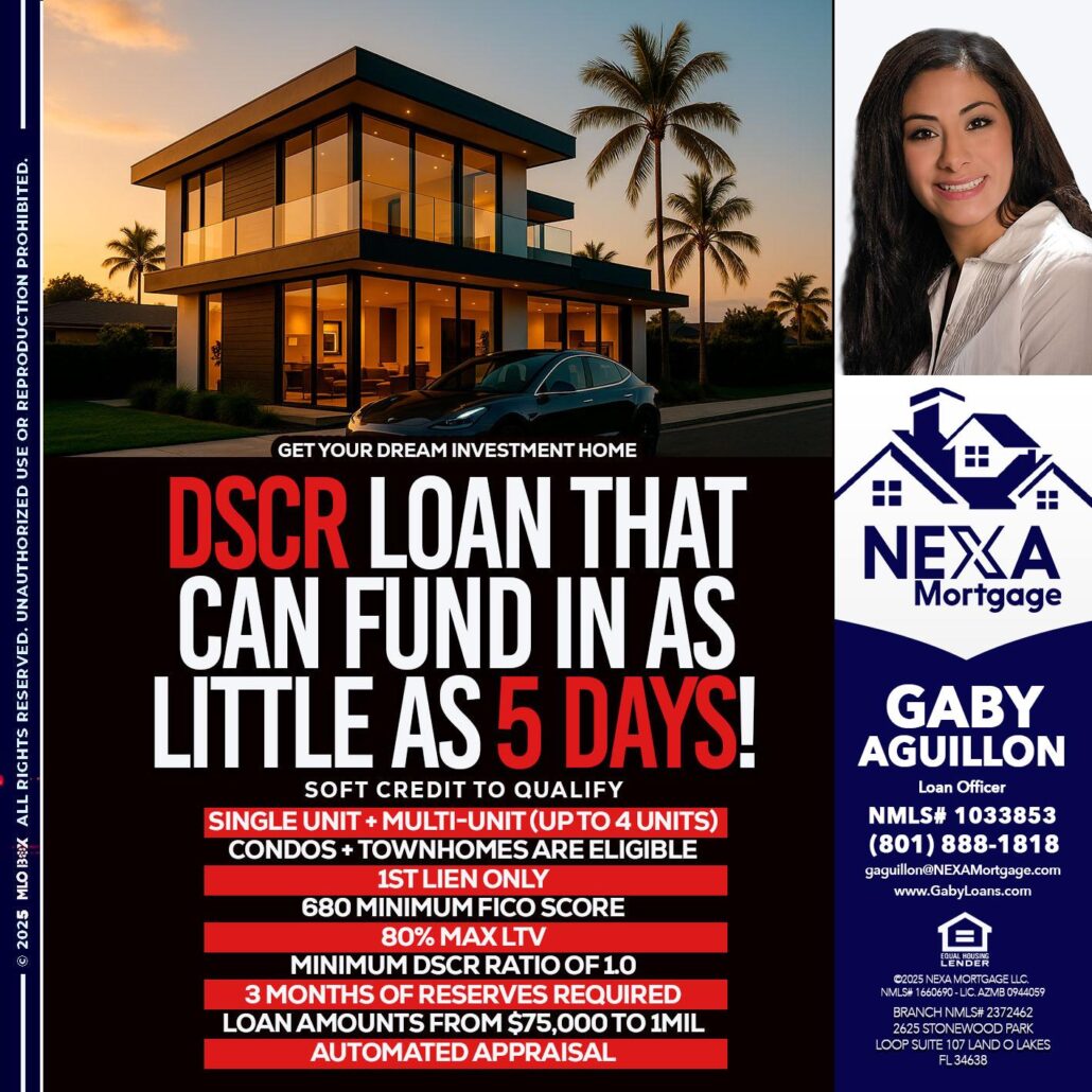 Hi, my name is Gaby Aguillon. I’m a Loan Officer with NEXA Mortgage LLC., offering personalized mortgage solutions, fast customized quotes, great rates and service with integrity.