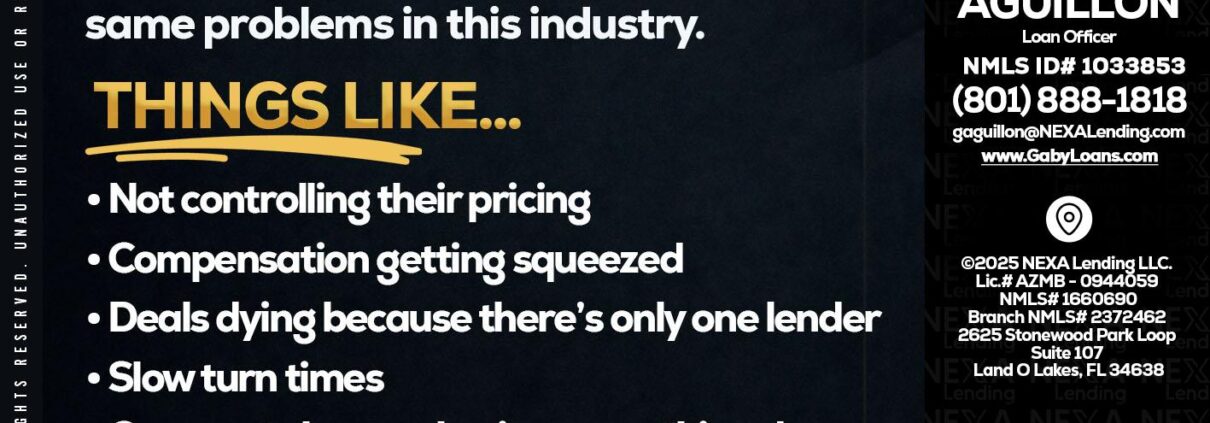 Hi, my name is Gaby Aguillon. I’m a Loan Officer with NEXA Lending LLC., offering personalized mortgage solutions, fast customized quotes, great rates and service with integrity.