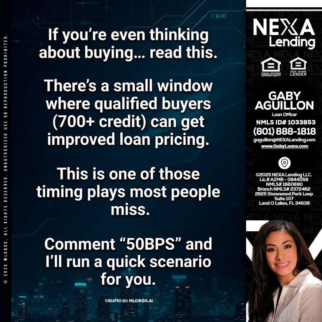 IF YOU EVER - Gaby Aguillon -Loan OfficerHi, my name is Gaby Aguillon. I’m a Loan Officer with NEXA Lending LLC., offering personalized mortgage solutions, fast customized quotes, great rates and service with integrity.