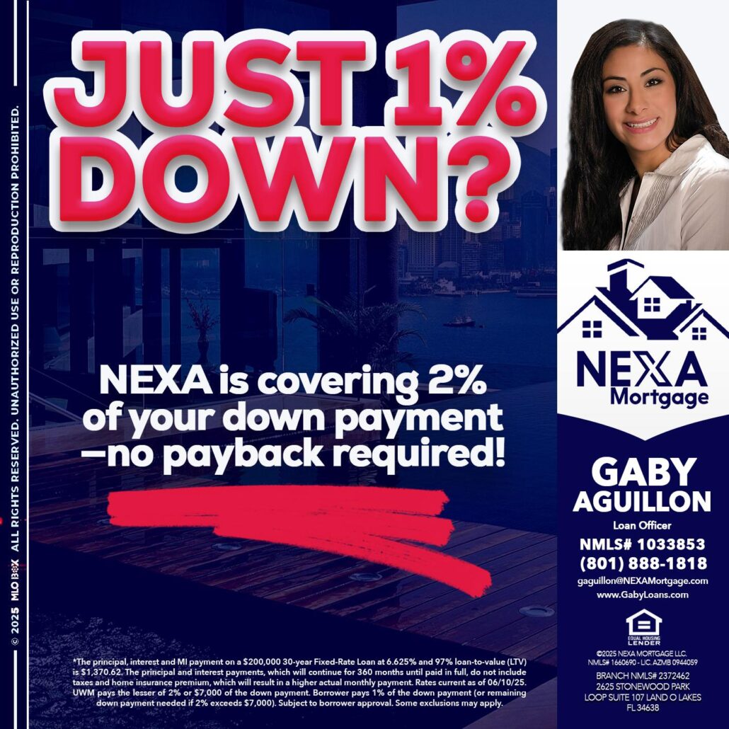 Hi, my name is Gaby Aguillon. I’m a Loan Officer with NEXA Mortgage LLC., offering personalized mortgage solutions, fast customized quotes, great rates and service with integrity.