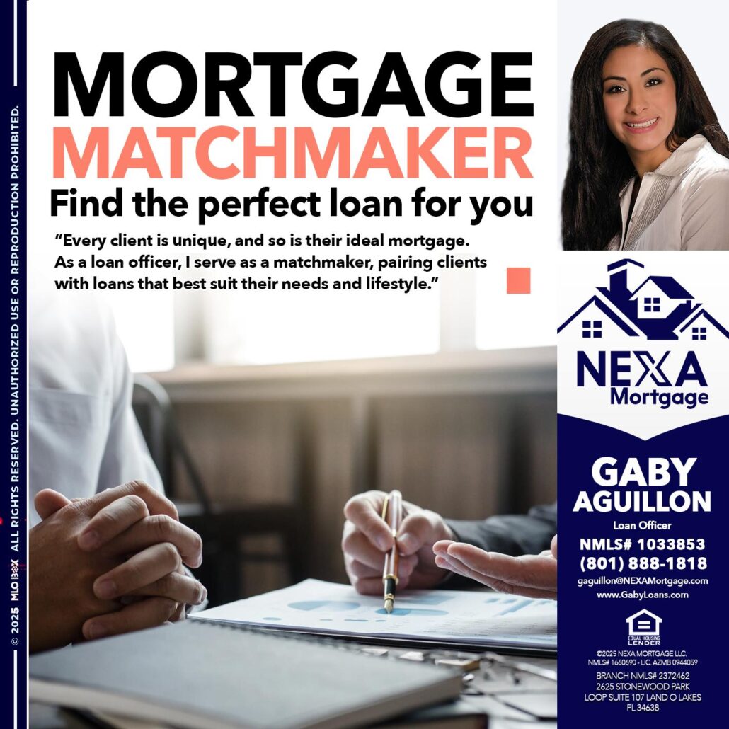 Hi, my name is Gaby Aguillon. I’m a Loan Officer with NEXA Mortgage LLC., offering personalized mortgage solutions, fast customized quotes, great rates and service with integrity.