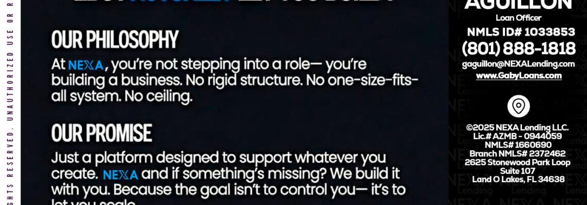 NEXA INSIGHTS - Gaby Aguillon -Loan OfficerHi, my name is Gaby Aguillon. I’m a Loan Officer with NEXA Lending LLC., offering personalized mortgage solutions, fast customized quotes, great rates and service with integrity.