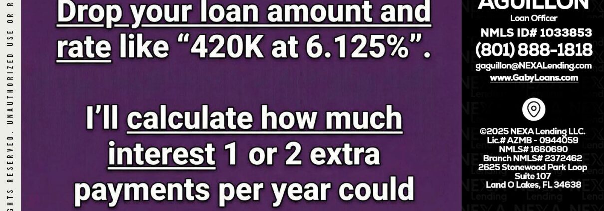ONE EXTRA - Gaby Aguillon -Loan OfficerHi, my name is Gaby Aguillon. I’m a Loan Officer with NEXA Lending LLC., offering personalized mortgage solutions, fast customized quotes, great rates and service with integrity.