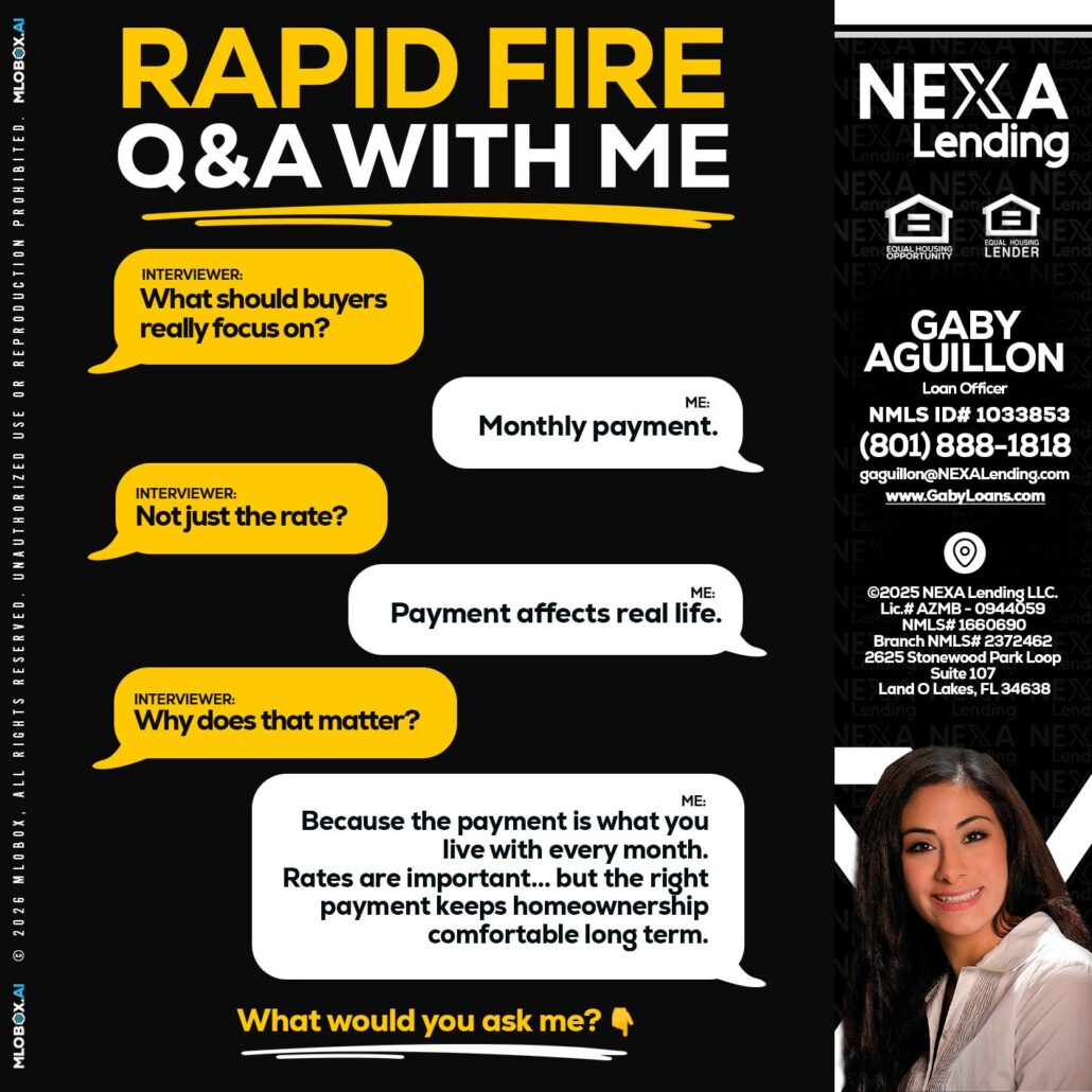 Hi, my name is Gaby Aguillon. I’m a Loan Officer with NEXA Lending LLC., offering personalized mortgage solutions, fast customized quotes, great rates and service with integrity.