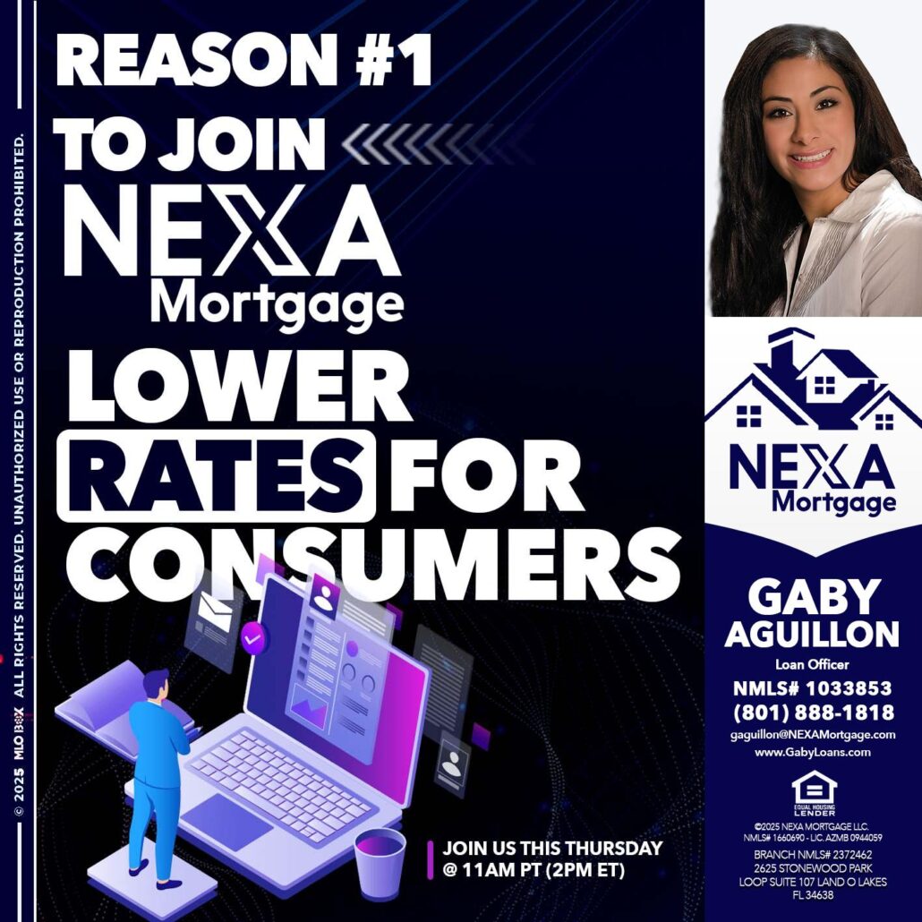 Hi, my name is Gaby Aguillon. I’m a Loan Officer with NEXA Mortgage LLC., offering personalized mortgage solutions, fast customized quotes, great rates and service with integrity.