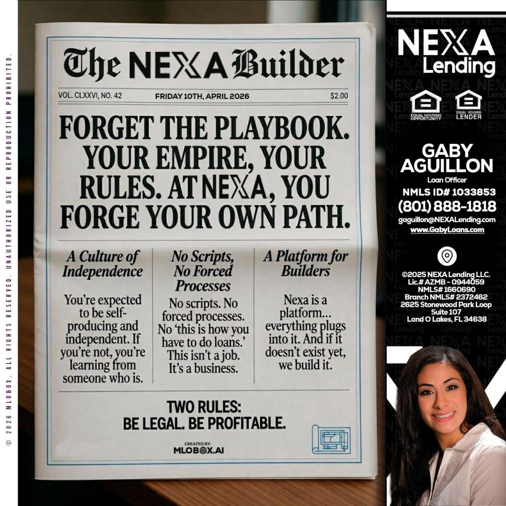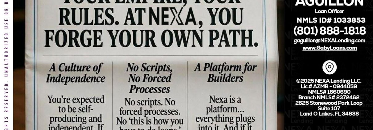 Hi, my name is Gaby Aguillon. I’m a Loan Officer with NEXA Lending LLC., offering personalized mortgage solutions, fast customized quotes, great rates and service with integrity.
